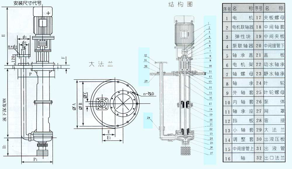 ⑤泵的下部裝有水軸承,液下深度超過1米的泵,設(shè)有中間水軸承,保證泵運(yùn)行平穩(wěn)可靠。