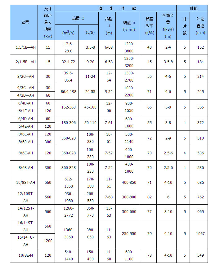 AH :渣漿泵產(chǎn)品系列